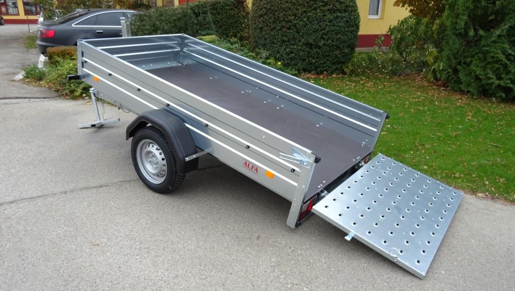 ALFA 12513MN.75 FAB billenős quad szállító utánfutó, feljáró ajtóval + TTL70 tekerős támasztólábbal